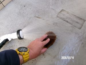 ブラシ・散水でゆっくりと丁寧に汚れを落としていきます🏄♀️