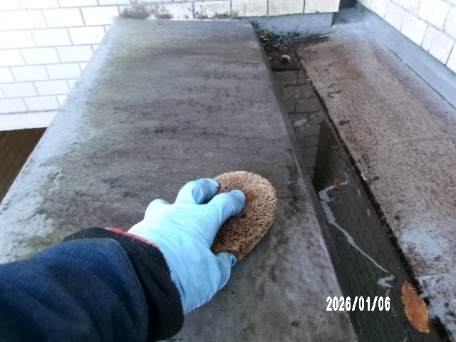 束子でゆっくりと丁寧に汚れを落としていきます🏄♀️