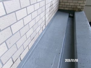 2階部分の庇・ドレン作業(梯子からの)です