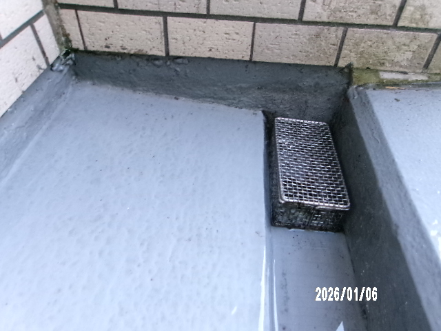 排水機能が遮断され水溜まりとなって